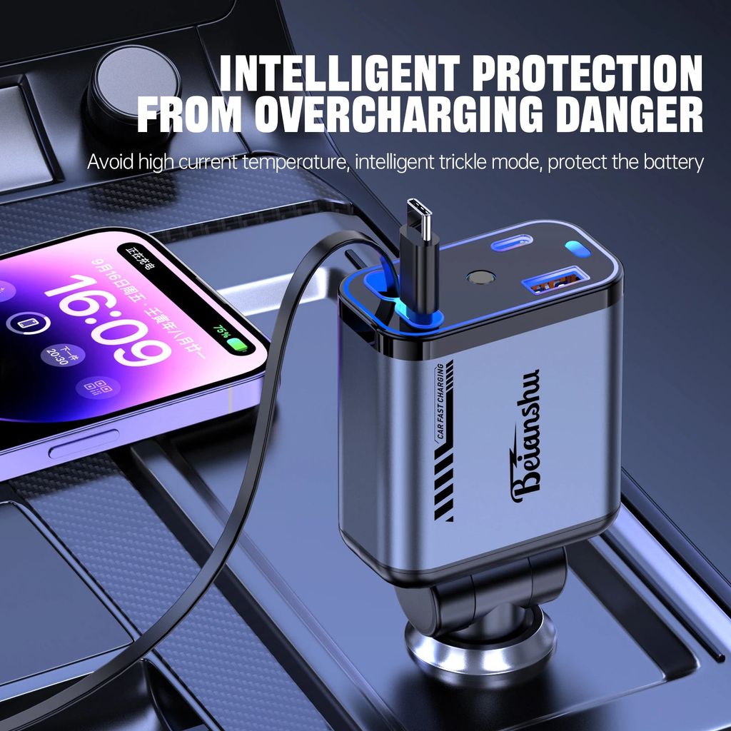 StarCharge 4-in-1 120W Retractable Car Charger with Starry Roof Light